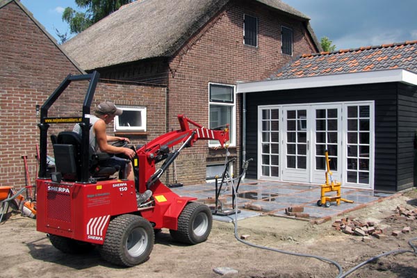 Sherpa150 - самый маленький автопогрузчик с шарнирным соединением рамы на рынке. Шириной 76 см этот мини погрузчик очень хорошо приспособлен кроме прочего для озеленителей когда нужно проехать через узкие садовые ворота. Тяжелая работа выполняется этой машиной, а широкие колеса обеспечат стабильность, мощность и небольшое давление на почву.